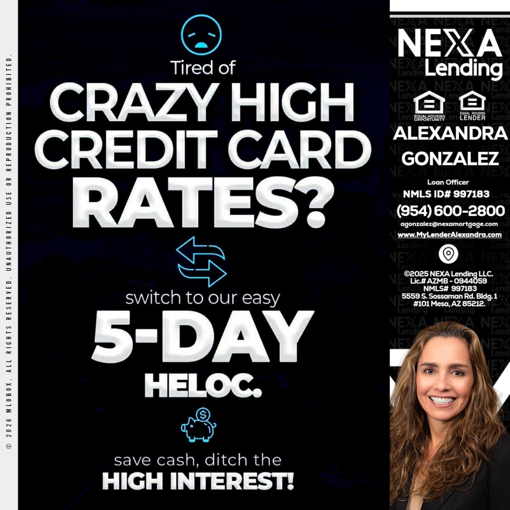Hi, my name is Alexandra Gonzalez. I’m a Loan Officer with NEXA Lending LLC., offering personalized mortgage solutions, fast customized quotes, great rates and service with integrity.