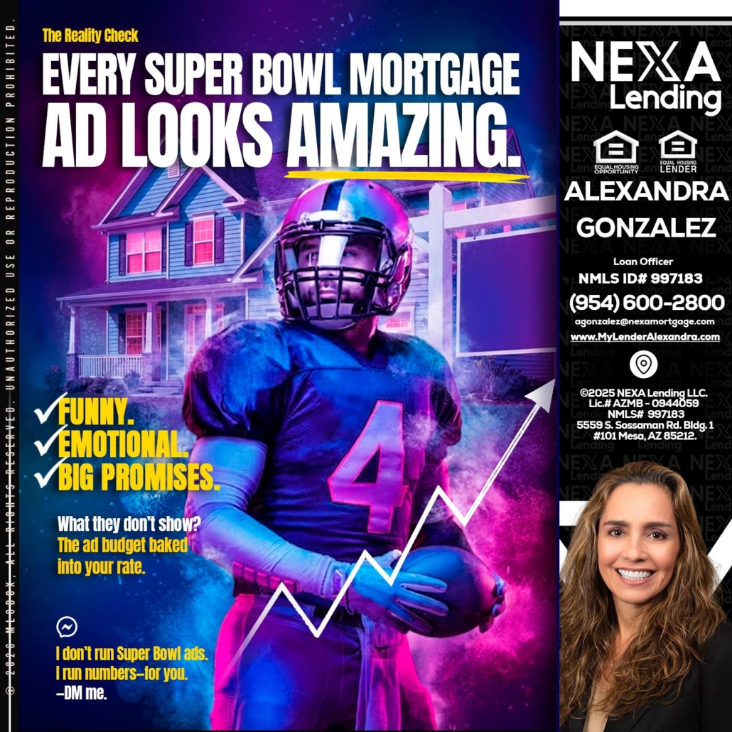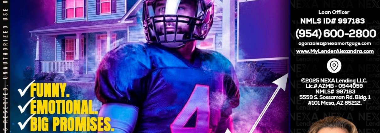 every Super Bowl - Alexandra Gonzalez -Loan OfficerHi, my name is Alexandra Gonzalez. I’m a Loan Officer with NEXA Lending LLC., offering personalized mortgage solutions, fast customized quotes, great rates and service with integrity.