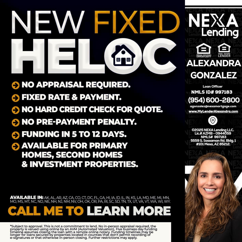 Hi, my name is Alexandra Gonzalez. I’m a Loan Officer with NEXA Lending LLC., offering personalized mortgage solutions, fast customized quotes, great rates and service with integrity.