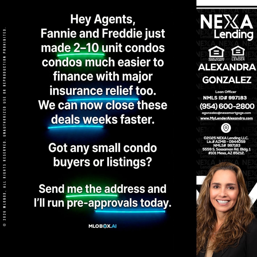 Hi, my name is Alexandra Gonzalez. I’m a Loan Officer with NEXA Lending LLC., offering personalized mortgage solutions, fast customized quotes, great rates and service with integrity.