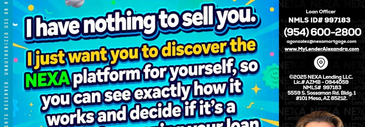Hi, my name is Alexandra Gonzalez. I’m a Loan Officer with NEXA Lending LLC., offering personalized mortgage solutions, fast customized quotes, great rates and service with integrity.