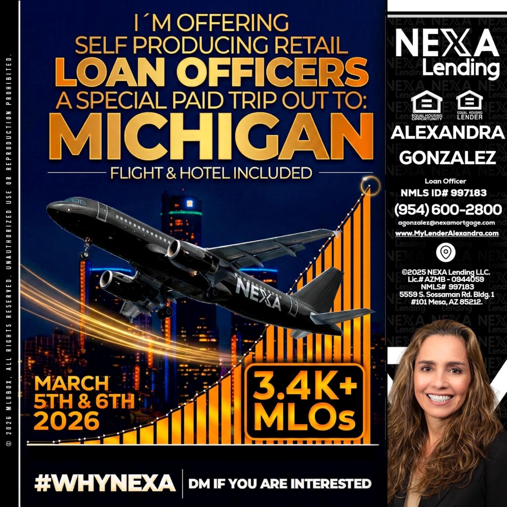 MICHIGAN - Alexandra Gonzalez -Loan OfficerHi, my name is Alexandra Gonzalez. I’m a Loan Officer with NEXA Lending LLC., offering personalized mortgage solutions, fast customized quotes, great rates and service with integrity.