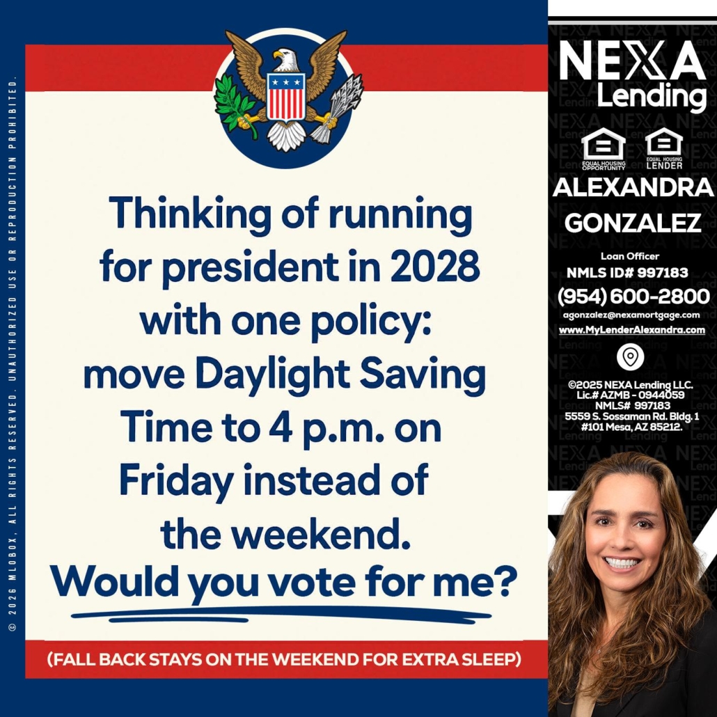THINKING OF RUNING - Alexandra Gonzalez -Loan OfficerHi, my name is Alexandra Gonzalez. I’m a Loan Officer with NEXA Lending LLC., offering personalized mortgage solutions, fast customized quotes, great rates and service with integrity.